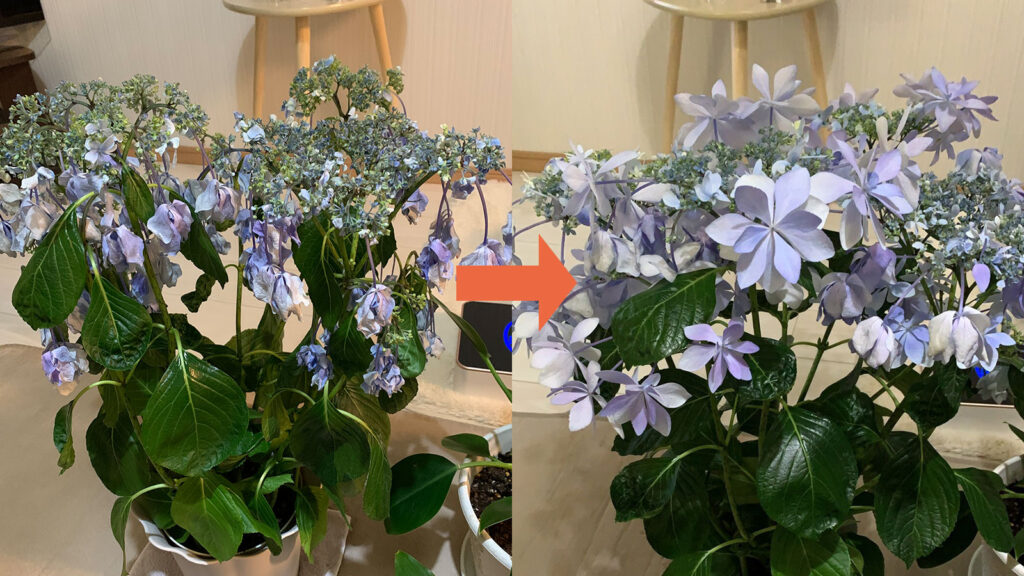 また、お庭のアジサイを採取してDENBA有りと無しで飾っていましたら、通常は9日で劣化しましたが、DENBA空間は新鮮そのもの!これが世界レベルの鮮度保持技術だと感動いたしました。